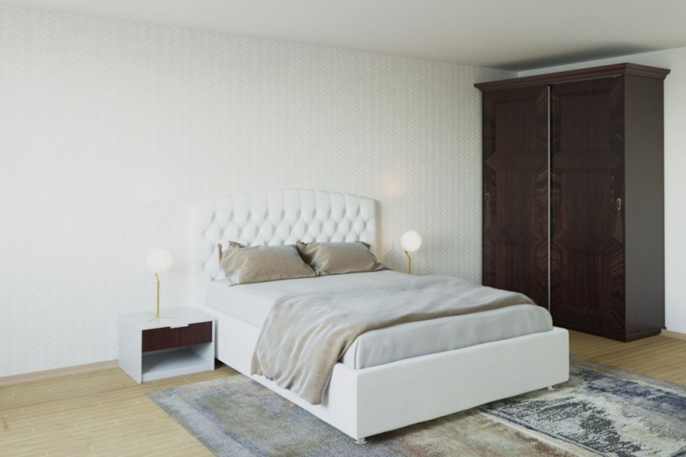 Кровать Берлин с ортопедическим основанием 2000 (экокожа белая)