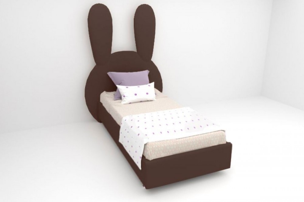 Кровать Зайка с ортопедическим основанием 1200 (экокожа коричневая)
