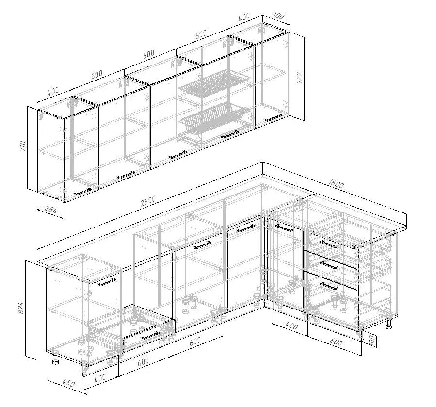 Кухонный гарнитур угловой Трансильвания 2600х1600 мм (Стол. 38 мм)